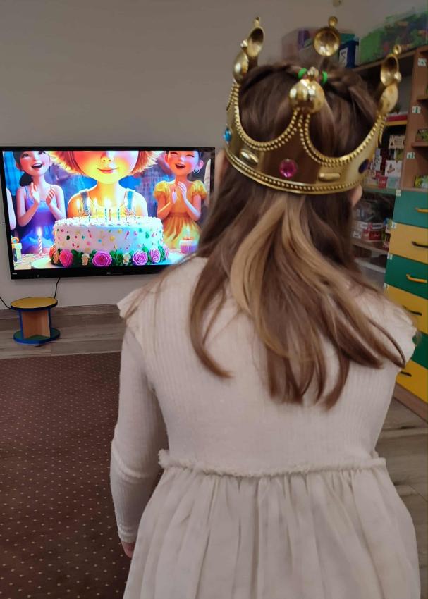 Urodziny w grupie Odkrywcy. Wszystkie dzieci życzyły swojej koleżance dużo zdrowia i radości !!