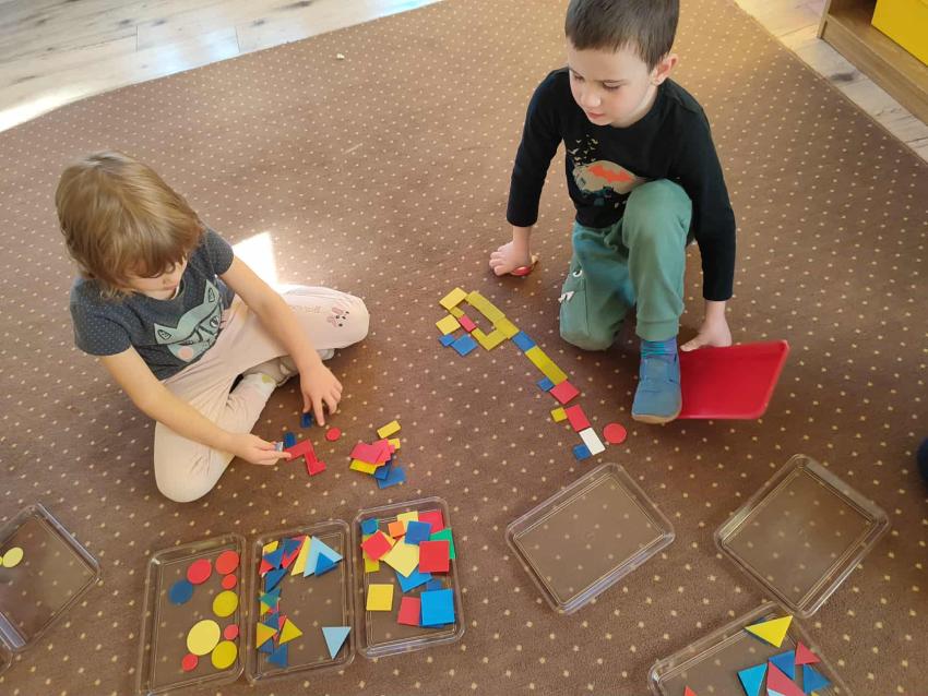 Grupa Odkrywcy - Zabawa z wykorzystaniem figur geometrycznych ,,Poszukiwacze figur".
