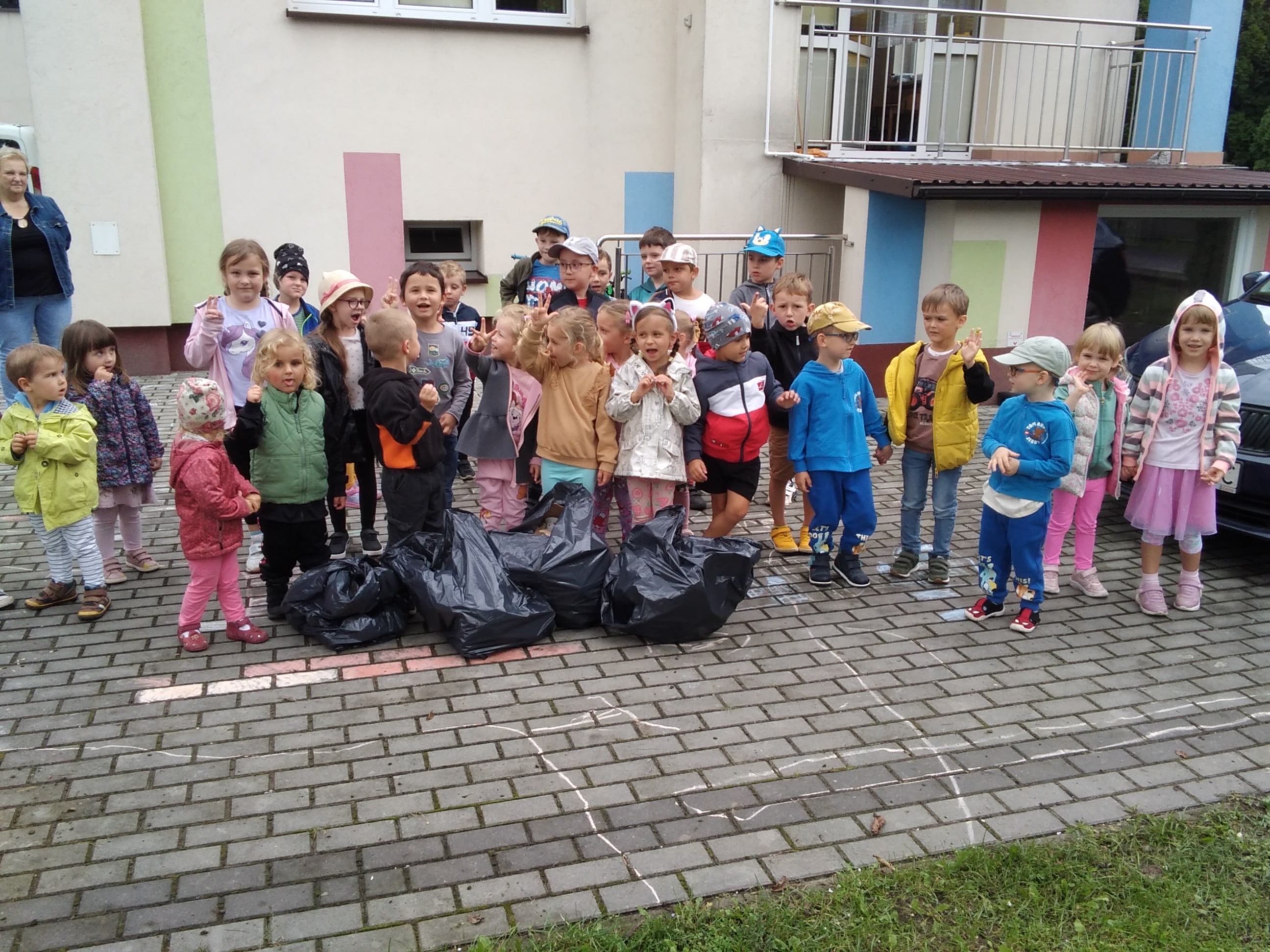 Wszystkie nasze przedszkolaki wzięły udział w akcji "Sprzątanie świata", która kształtuje wartosci proekologiczne u najmłodszych. Posprzątaliśmy z symbolicznych "śmieci" i "papierków" nasz ogród przedszkolny.