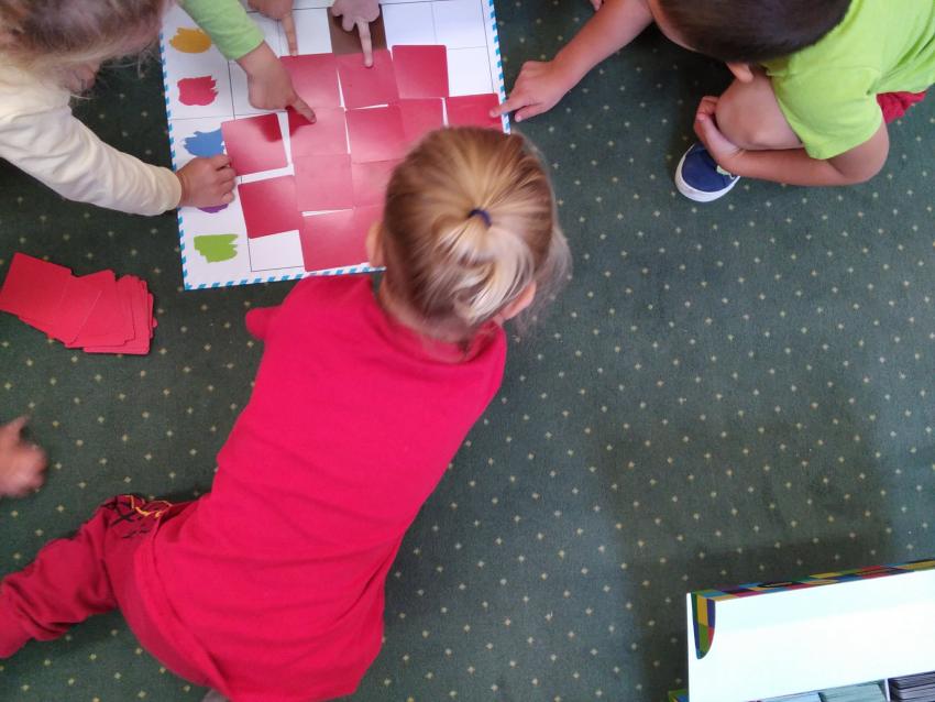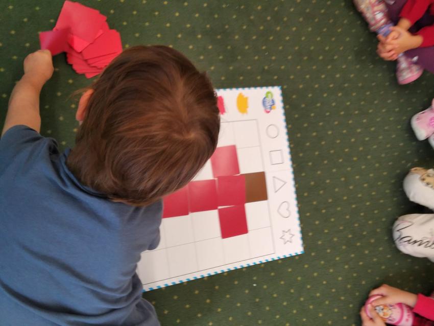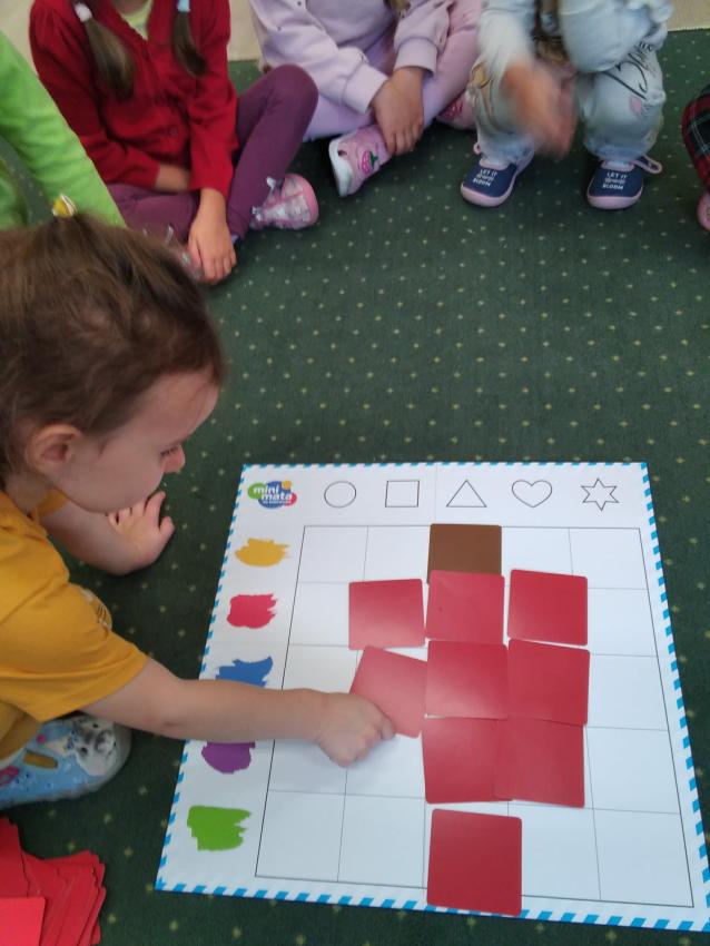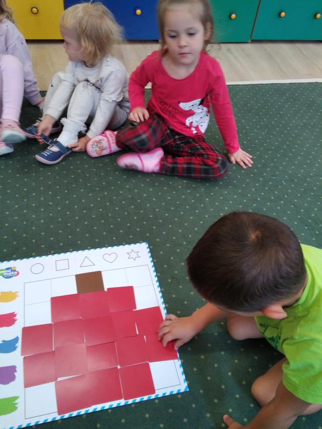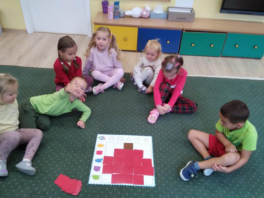 Tym razem grupa Misie zakodowała, na macie do kodowania, symbol jesieni: Jabłko