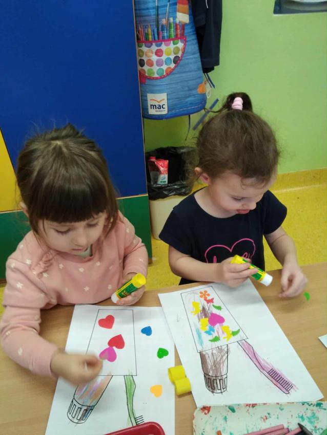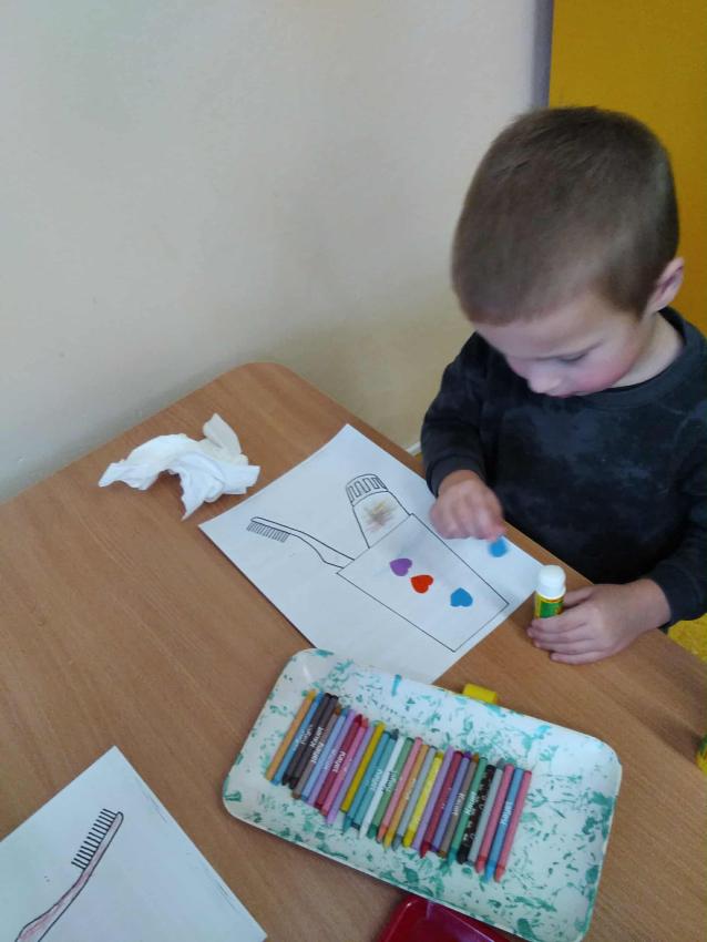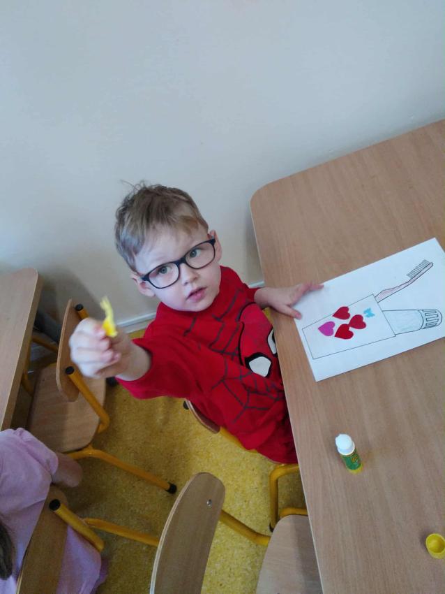 "Szczotka, pasta, kubek, ciepła woda, tak się zaczyna piękna przygoda..." Praca plastyczna w grupie: Misie.