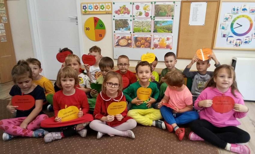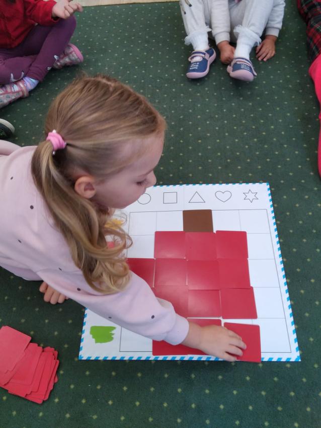 Tym razem grupa Misie zakodowała, na macie do kodowania, symbol jesieni: Jabłko